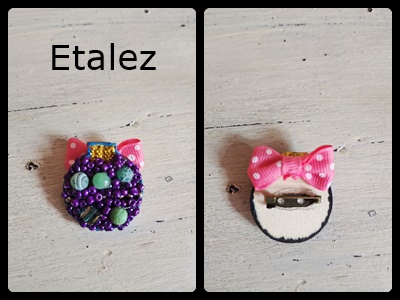 Broșă realizată handmade în formă de glob. Are atașate diferite accesorii: fundiță textilă, mărgeluțe colorate, ștrasuri, sfere din pietre semiprețioase – agate frosted și rocă vulcanică. Dimensiuni aproximative: 3 cm lățime x 3,5 cm lungime. Concept propriu, produs unicat. Preț: 35 lei