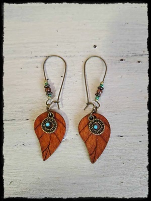 Cercei realizați handmade din mărgele, elemente metalice și din lemn. Dimensiuni aproximative: 2 cm lățime x 6,5 cm lungime. Preț: 25 lei