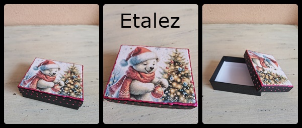 Cutie din carton presat foarte rezistent decorată handmade cu motive de iarnă. Se pot păstra în ea mici obiecte, amintiri, suveniruri, bijuterii sau ceasuri. Dată pe exterior cu lac incolor de protecție. Dimensiuni aproximative: 9,2 cm lungime x 7,1 cm lățime x 3,2 cm înălțime. Concept propriu, produs unicat. Preț: 35 lei