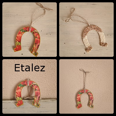 Decorațiune interioară realizată handmade din lemn în formă de potcoavă potrivită pentru bucătărie, terasă sau zona de dining ce are două fețe. Pe o parte are un model floral, iar pe cealaltă are boabe uscate de grâu și orez. Potcoava este unul dintre cele mai cunoscute simboluri ale norocului și nu ar trebui să lipsească din nicio casă. De obicei se amplasează deasupra ușii de la cameră, dar poate fi amplasată în orice spațiu (interior sau exterior). Potcoava este îndreptată în jos ca norocul să se scurgă peste cei ce trec pe sub ea. Dimensiuni aproximative: 8,3 cm lățime x 19 cm lungime (cu tot cu șnurul rustic de prindere). Concept propriu, produs unicat. Preț: 45 lei