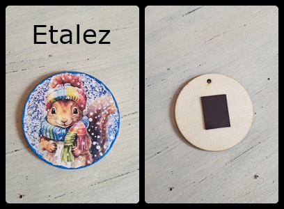 Decorațiune realizată handmade cu model de iarnă și magnet pe spate pentru a putea fi pusă pe orice suprafață metalică. Dimensiuni aproximative: 8 cm diametru. Concept propriu, produs unicat. Preț: 30 lei