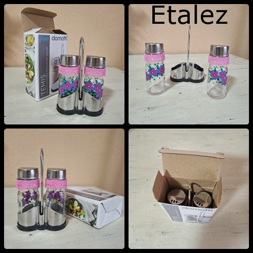 Set solniță sare și piper pictate manual + suport metalic. Se va evita expunerea la abur/umezeală și se vor șterge la nevoie cu o cârpă moale uscată sau puțin umedă, nimic abraziv care să strice/zgârie modelul. Setul este nou, a fost cumpărat special pentru a fi decorat handmade (vine în cutia originală). Dimensiuni aproximative: 3,2 cm lățime diametru x 8,8 cm înălțime (recipient sticlă); 8 cm lățime x 12 cm înălțime (ambele solnițe cu tot cu suport). Concept propriu, set unicat. Preț: 60 lei